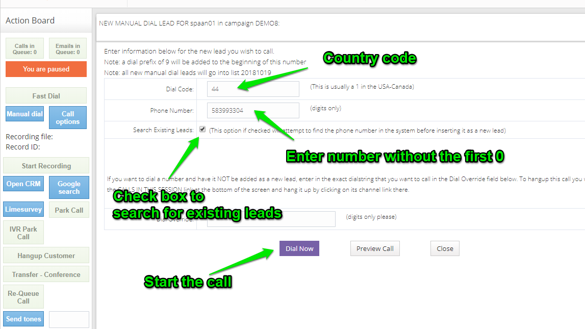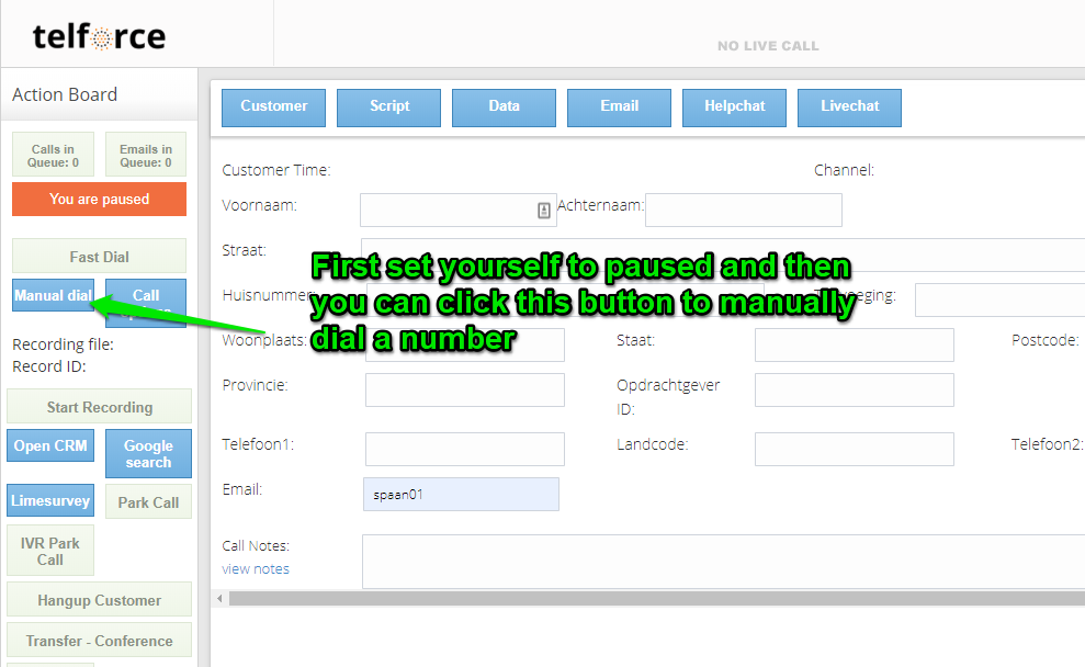 With Telforce you can manually dial a telephone number via the contact module in the Script sheet as we saw in the previous paragraph, but it is also possible to do this with the standard Telforce buttons in the left panel.