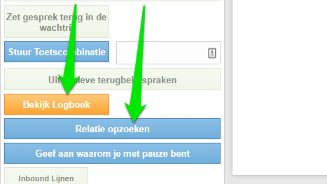 Druk vervolgens op de paarse 'Nu bellen' knop en je komt in de gegevens van de relatie terecht waar je je administratieve handelingen kan uitvoeren. Daarna dien je weer op te hangen en met de juiste code af te boeken.